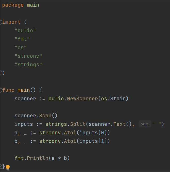 fmt.Println(a * b)