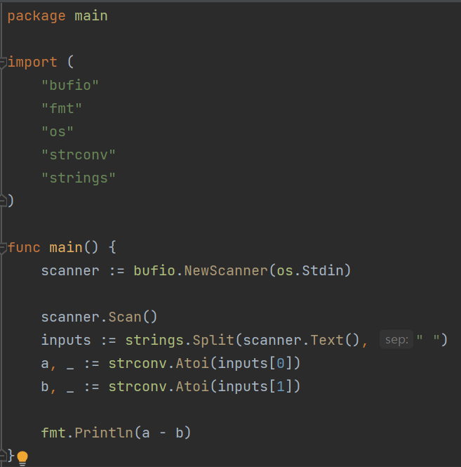 fmt.Println(a - b)
